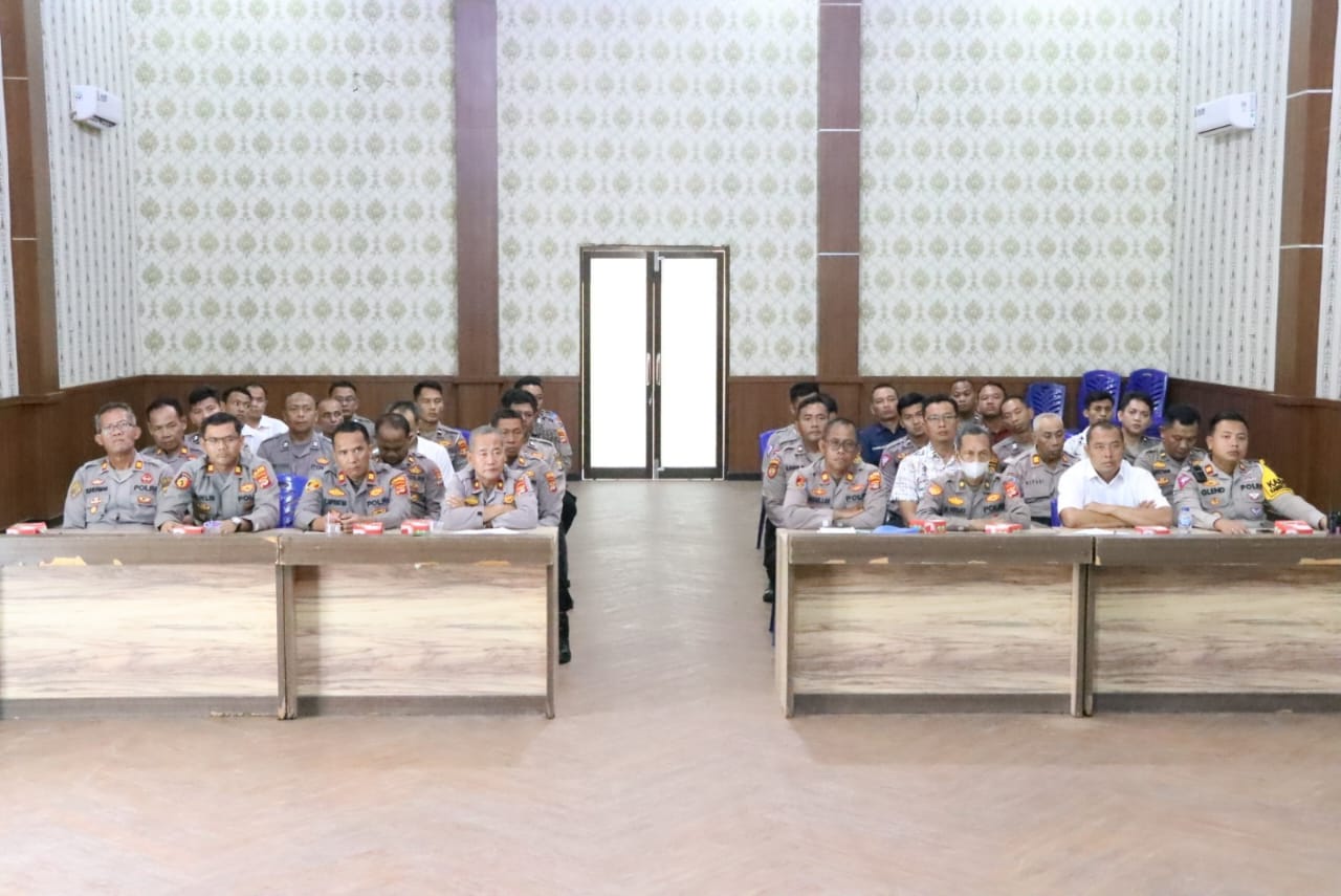 KARYANASIONAL – Kapolres Tulang Bawang, Polda Lampung, AKBP James H Hutajulu, SIK, SH, MH, MIK dengan didampingi Wakapolres, Kompol M Kasyfi Mahardika, SIK, SH, MM, membuka secara langsung kegiatan pelatihan peningkatan pelayanan publik (yanlik) di Aula Wira Satya, Mapolres setempat, hari Selasa (06/02/2024).